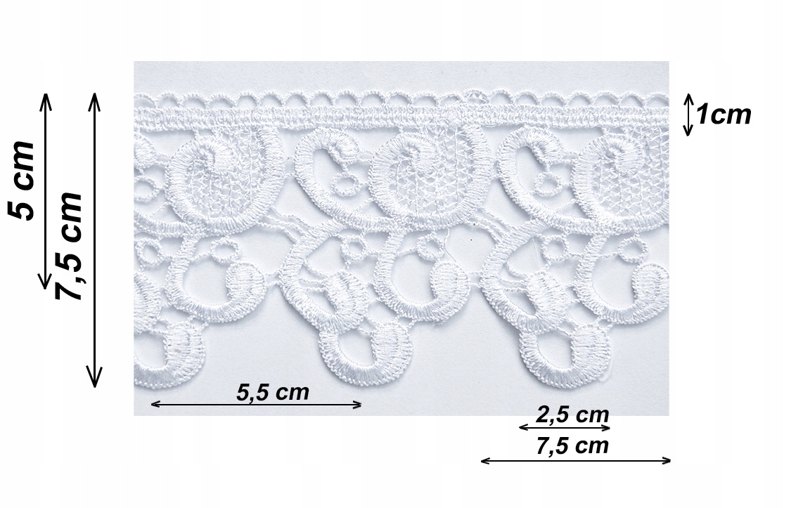 Гіпюрова мереживна стрічка білого кольору, висота 7,5 см