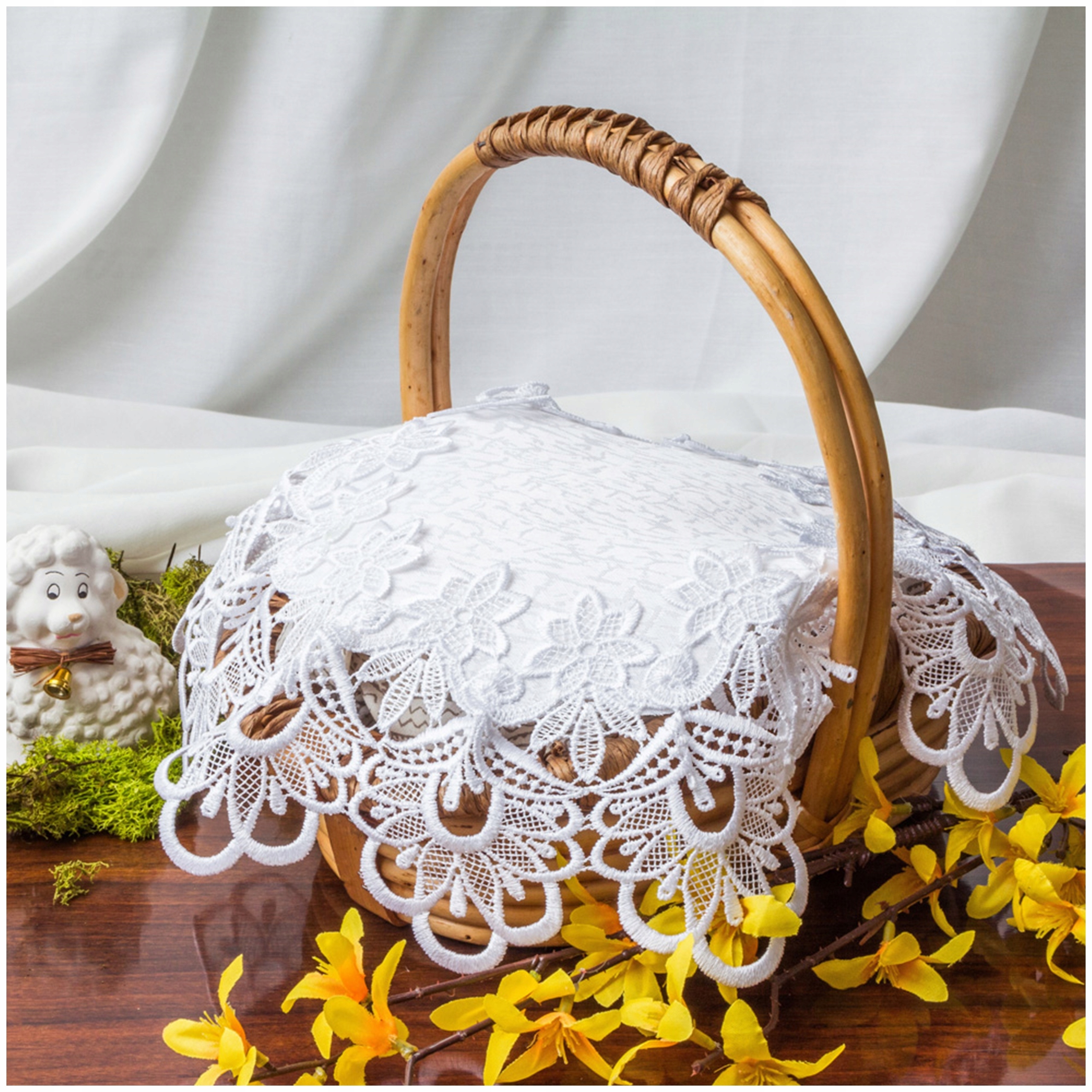 ✅Декоративний елемент – Мереживна серветка додає кошику елегантності та підкреслює урочистість свята.