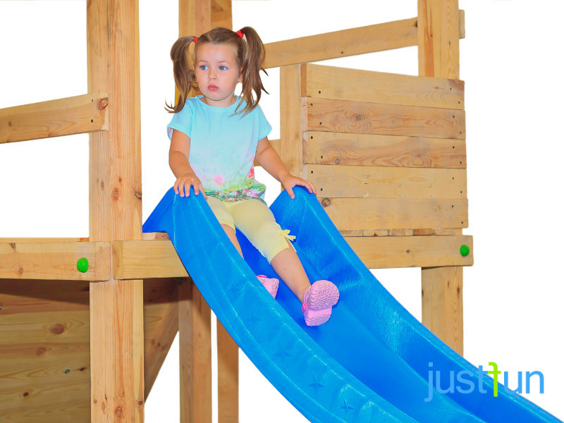 Гірки JUST FUN виготовлені із загартованого поліетилену високої щільності HDPE, литий під тиском, який є міцним і стійким до погодних умов (високих і низьких температур) і, що найголовніше, не знебарвлюється під впливом сонячного світла (УФ) та довго зберігають яскраві кольори. Їх можна підключити до води, завдяки чому ви зможете перетворити звичайну гірку на чудову водну гірку! Гірка європейського виробництва, надійна і гарантує безпеку вашої дитини на дитячому майданчику.