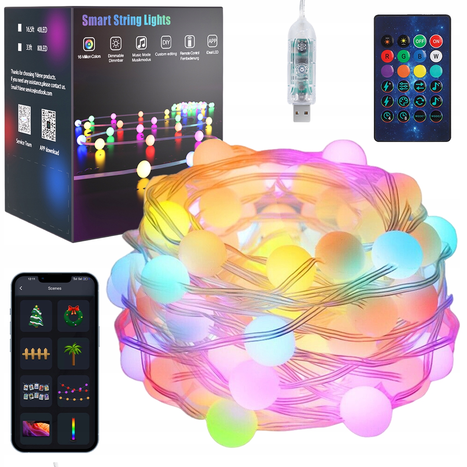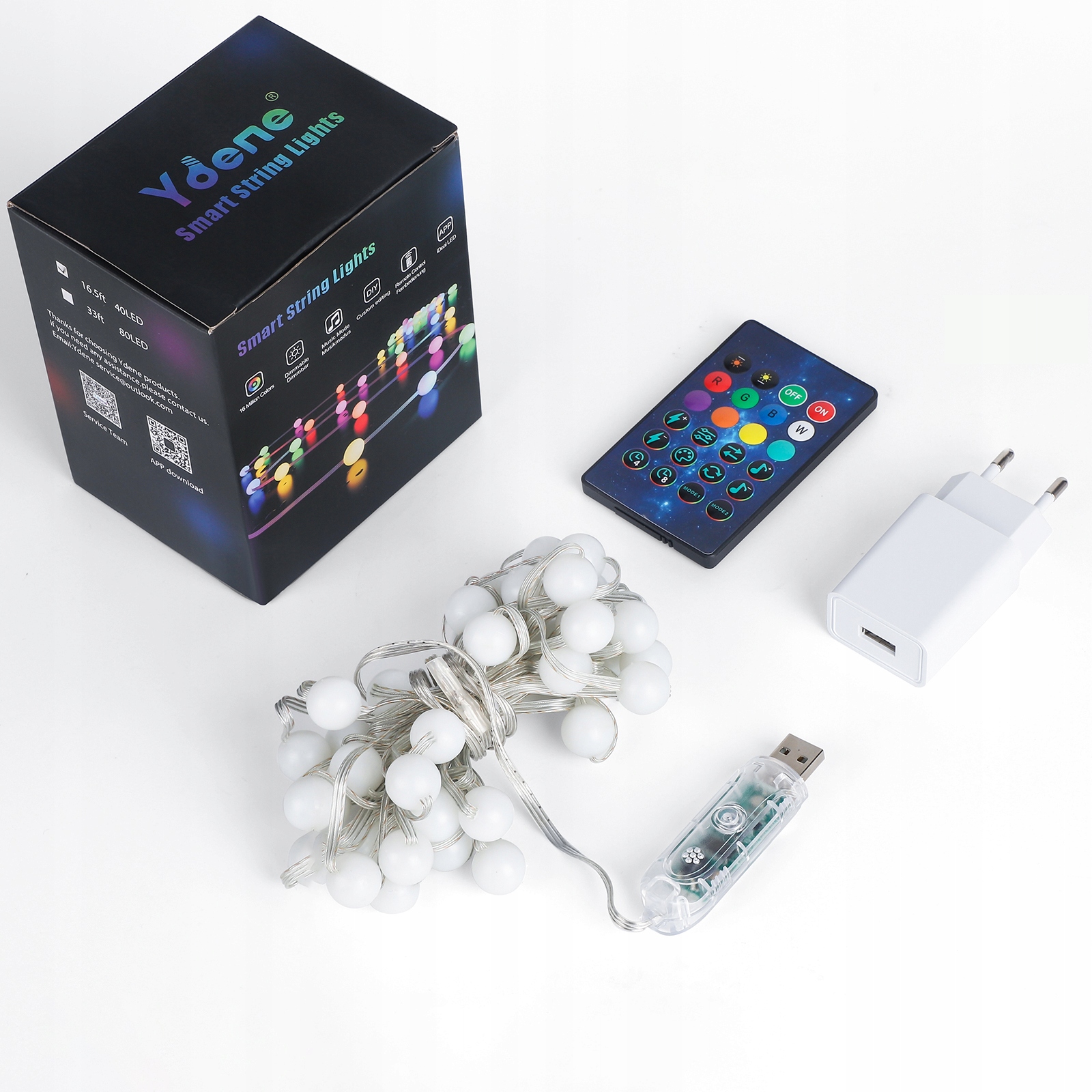 4 DC5V. Вміст упаковки: 10 м 80 молочних продуктів -білі світлодіодні кульки. Інфрачервоний світлодіодний контролер.