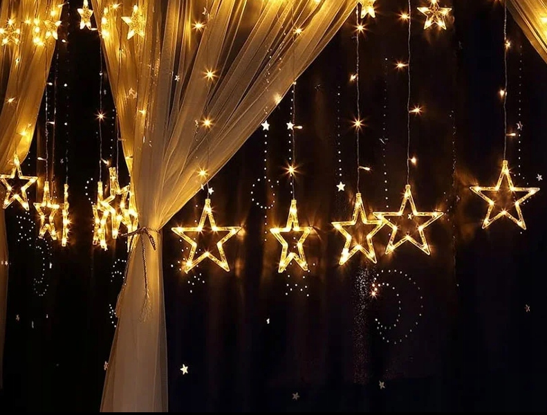GIRLANDA KURTYNA ŚWIETLNA ŚWIĄTECZNA GWIAZDKI LED Z HACZYKAMI CIEPŁA BIEL