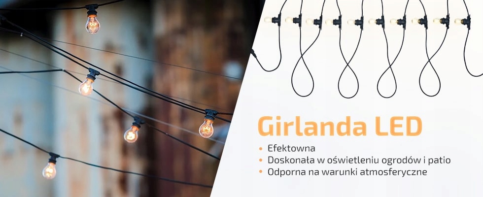 Гірлянди в нашій пропозиції є скомпонованими кожен 1 метр розетки E27. Вони характеризуються можливістю розширення серії до максимальної потужності 2300 Вт, що надає дуже широкі можливості в компонуванні продукту. Гірлянди адаптовані до лампочок класів А++ - Е, що додатково збільшує можливості компонування з використанням альтернативних джерел світла. Вони мають рівень герметичності IP44, тому ви можете бути впевнені, що продукт безпечно працюватиме в мінливих зовнішніх умовах.