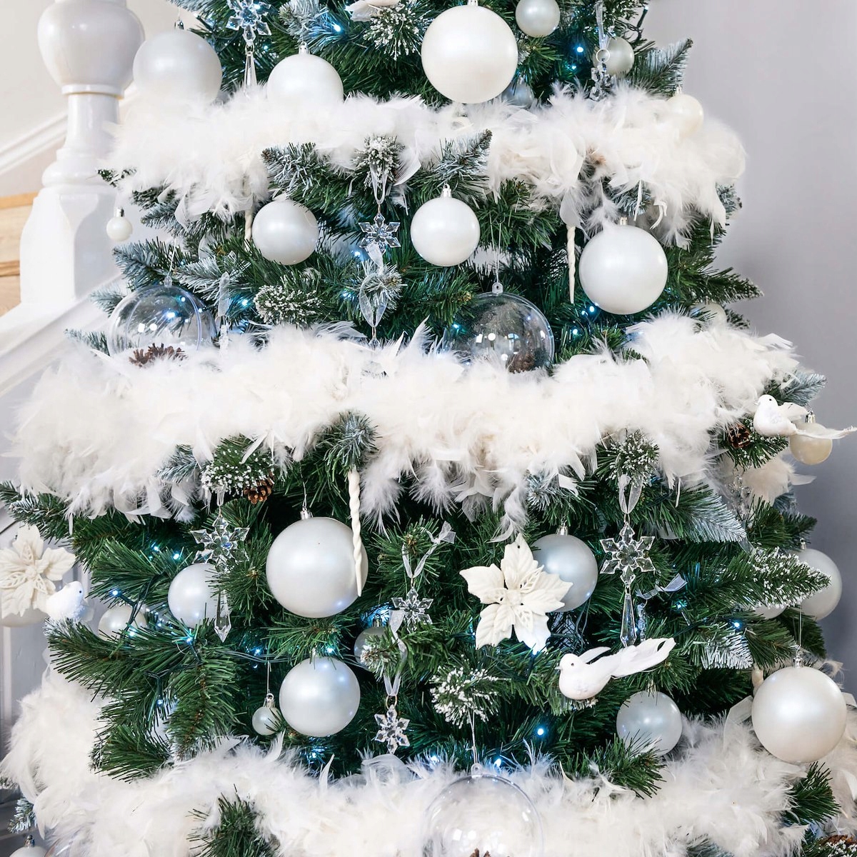 Ялинковому ланцюжку з пір'я потрібен трохи часу після того, як його вийняли з упаковки, щоб стати пухнастим . Як тільки це буде досягнуто, ви будете в захваті від його зовнішнього вигляду! М'яке, натуральне пір'яобвиє новорічну ялинку, додавши легкості та елегантності відповідно до останніх тенденцій.