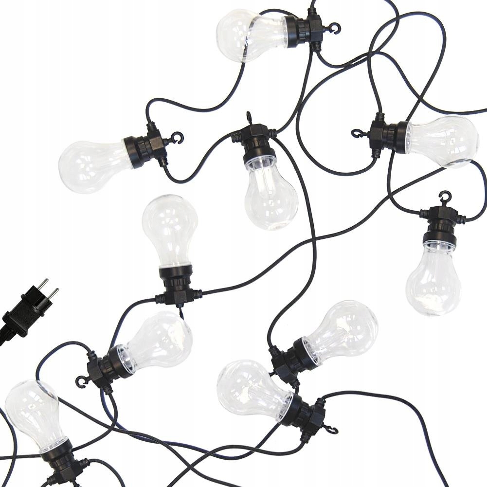 Садові гірлянди, зовнішні садові лампи, 10 світлодіодів, жовті IP44 Лампочки забезпечать гарне світло, створюючи унікальну атмосферу в саду, на терасі чи балконі. Гірлянда містить 10 світлодіодів, що забезпечують жовте світло і встановлені на чорному кабелі довжиною 7,5 м. Завдяки класу захисту IP44 їх можна вішати як у приміщенні, так і на вулиці. Технічні характеристики: 10 світлодіодів, Підвісний тримач, Відстань між лампами: 50 см, Загальна довжина: 7,5 м, Довжина кабелю живлення: 3 м, Матеріал: пластик, Живлення: мережа 100 - 240 В, Прі. 230 В, 50 Гц, сек. 3,2 В постійного струму, Загальна: 1,6 Вт, 3 В/100 м Колір кабелю: чорний, IP44 - рекомендуємо використовувати під дахом (вони не стійкі до дощу) Колір лампи: жовтий, Загальна ширина однієї лампи: 8 см, Колір абажура: прозорий.