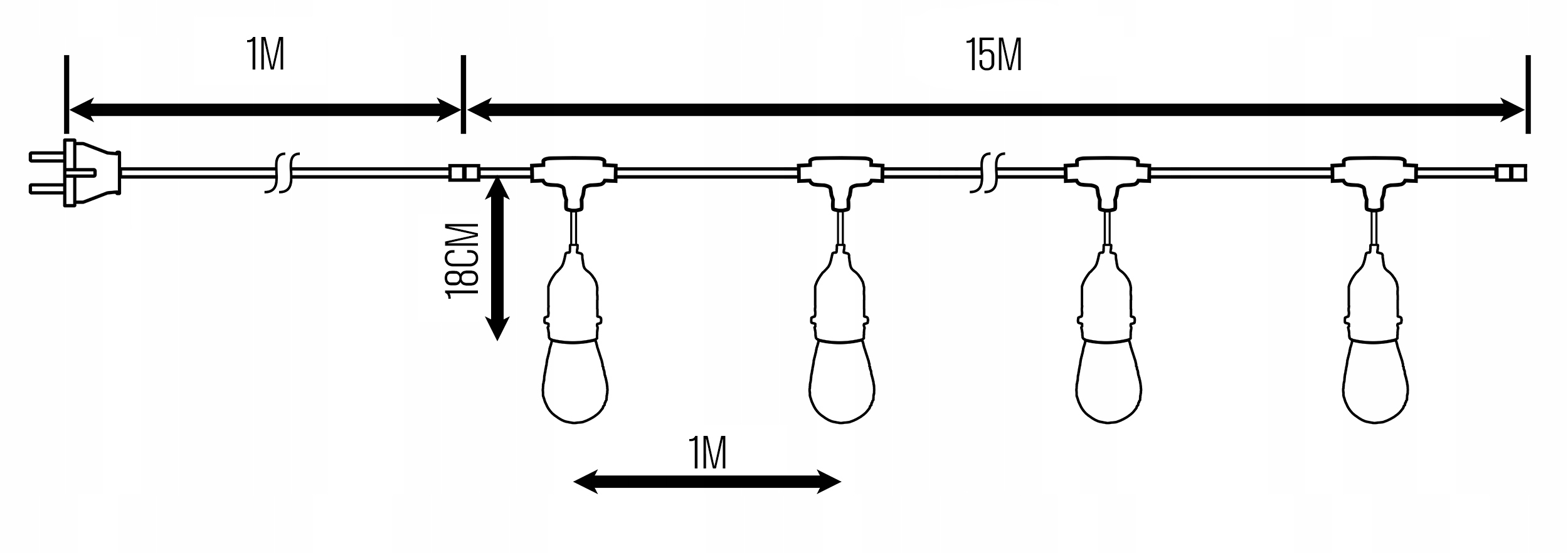 ✔️ Садова гірлянда довжиною 15 м має 15 патронів для ламп E27 (включно з лампами теплого кольору)
