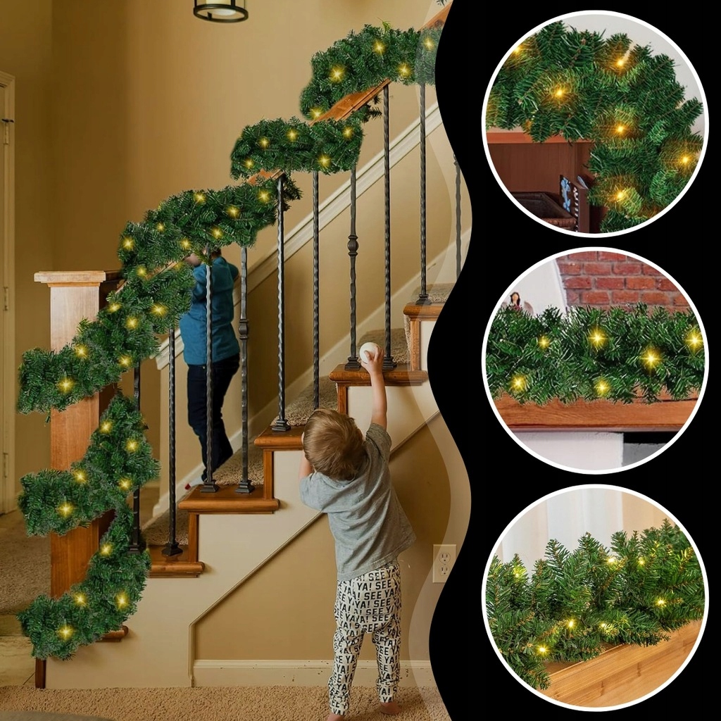 Виготовлена з високоякісного ПВХ, ідеально імітує натуральні ялинові гілки. Вона гнучка, тому ви можете вільно її формувати та адаптувати до вибраного простору - ідеально підходить для декорування камінів, поручнів, двері, вікна чи вітрини. Ви також можете додатково прикрасити його фенечками, бантами чи сосновими шишками.