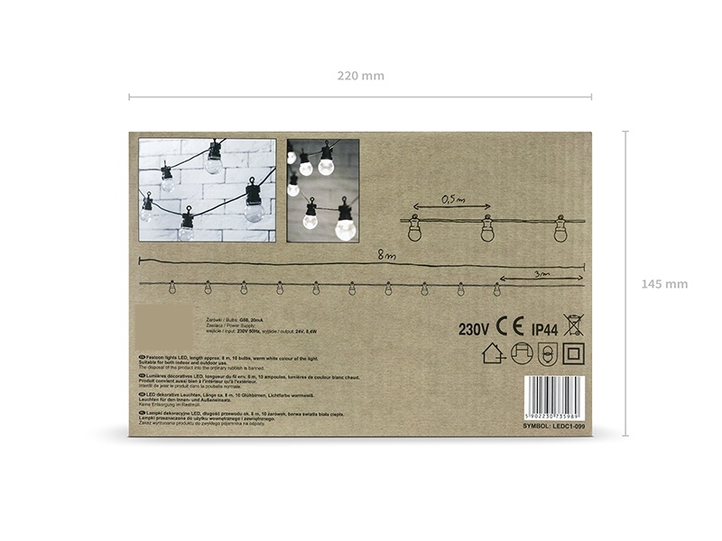 Просматривая «ГИРЛЯНДА СВЕТОДИОДНЫЕ ЛАМПЫ ЛАМПЫ ПАТИО БЕСЕДКА САД», вы можете быть уверены, что данный товар из каталога «Световые гирлянды» будет доставлен из Польши и проверен на целостность. В цене товара, указанной на сайте, учтена доставка из Польши. Внимание!!! Товары для Евросоюза, согласно законодательству стран Евросоюза, могут отличаться упаковкой или наполнением.