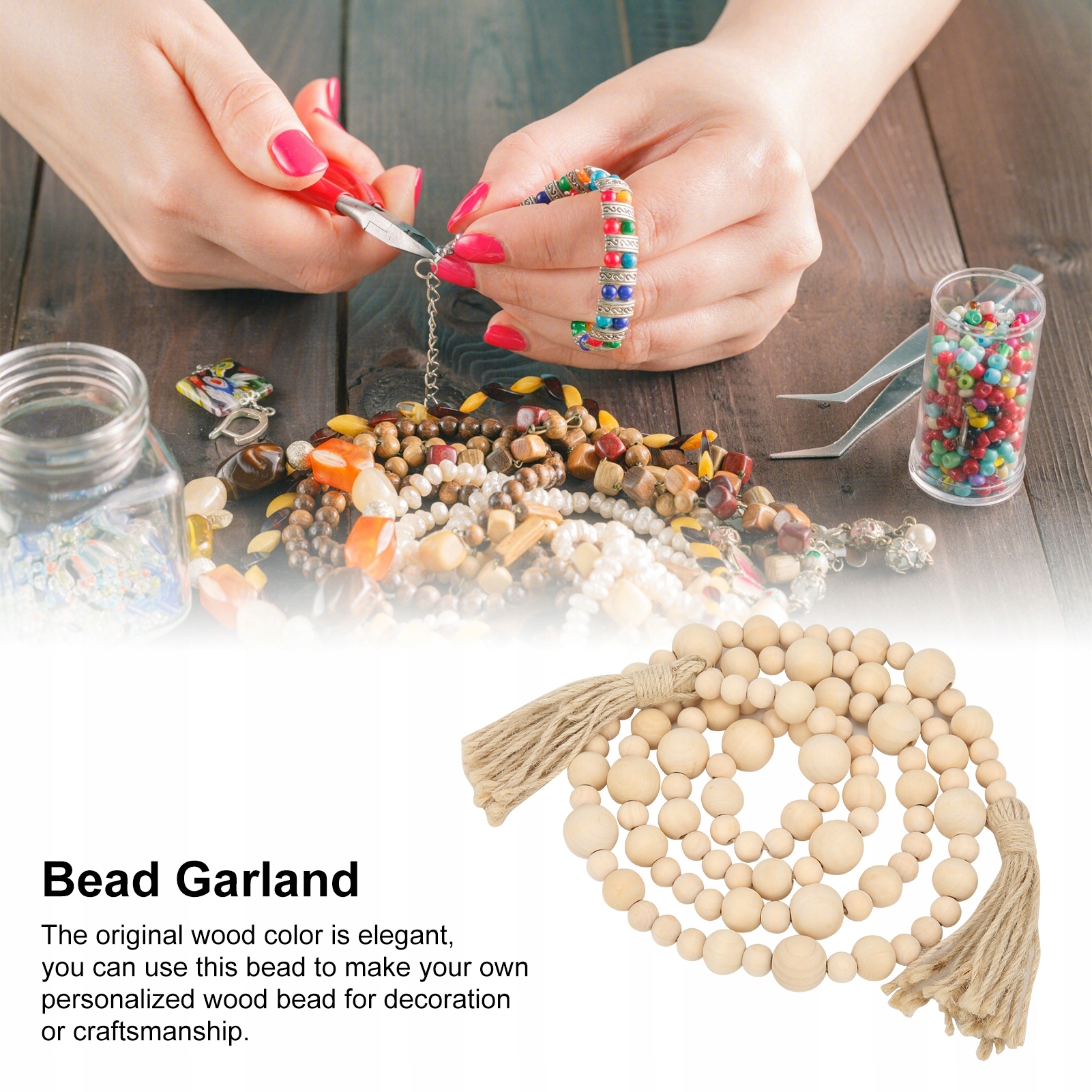Гірлянда з бісером, дерев'яна дерев'яна гірлянда для прикраси будинку для wi