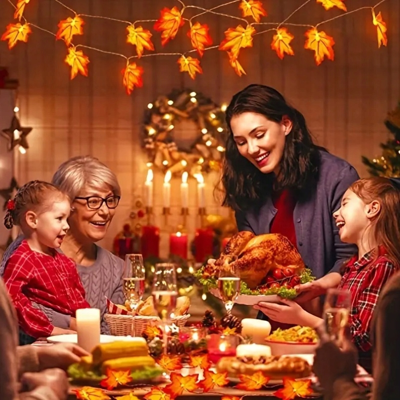 Приготуйтеся до дивовижної ночі Хелловіна з нашою світловою гірляндою з кленового листя. Ця чарівна прикраса додасть незабутню атмосферу вашому дому чи вечірці!