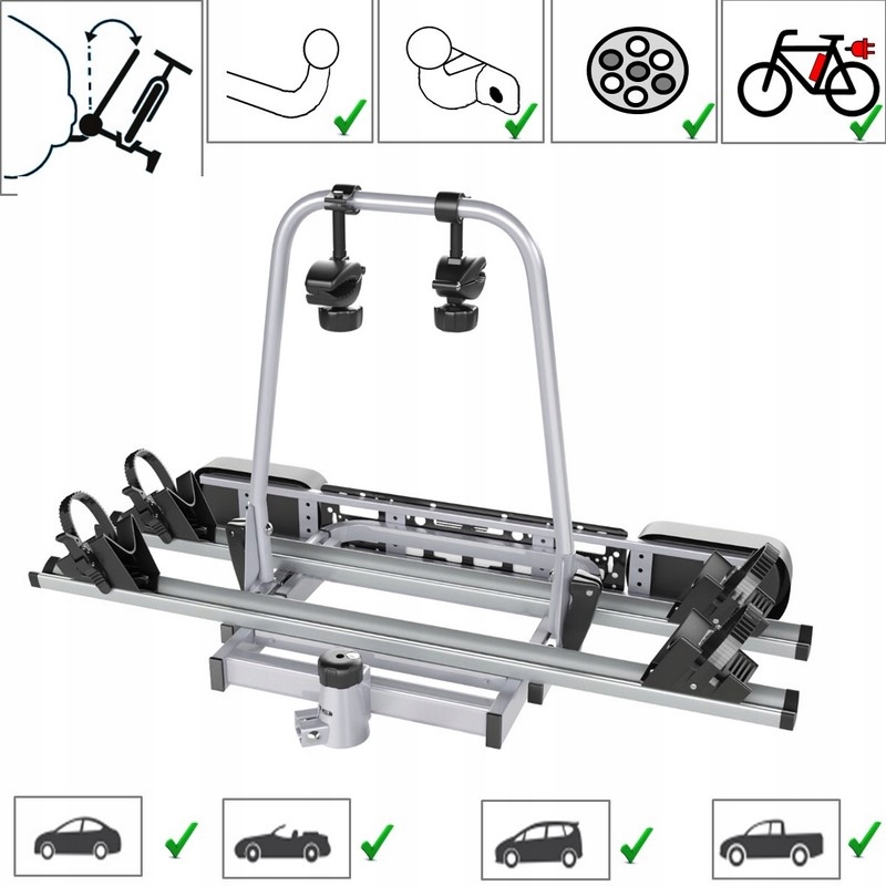 Функція нахилу платформи (передбачає зручне та швидке позиціонування частини платформи, на якій ми кріпимо велосипеди, щоб можна було відкрити багажник).