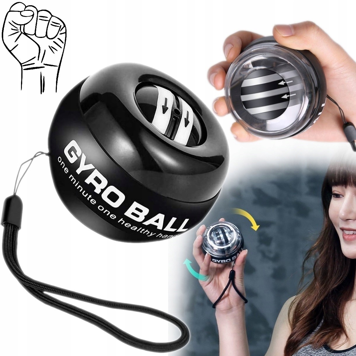 gyroball - це невеликий м'яч, створений для тренувань глибоких м’язів рук, рук, рук, пальців, зап’ястя або рук. Гіроскопічний м'яч - це чудовий навчальний інструмент як для спортсмена і музики або людини, яка працює довгих годин до комп'ютер . Він також буде використовуватися як чудова реабілітаційна підготовка , наприклад Для людей, які борються з синдромом Тунелю зап'ястя або змін дегенеративні . Цей невеликий пристрій може покращити результати під час гри в боулінг або гольф.