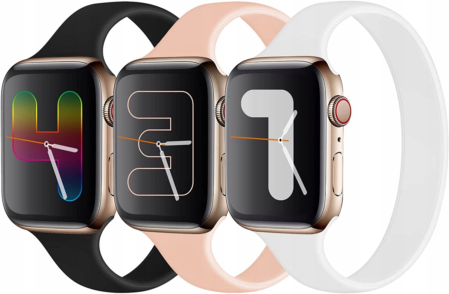 У наборі 3 кольори з фото: чорний, білий і рожевий. Всі в розмірі 38/40/41мм M.