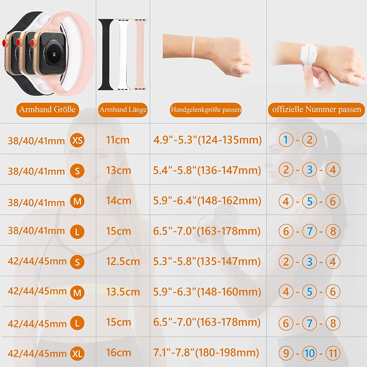 - Браслет Solo Loop Bracelet сумісний із ремінцями Apple Watch Series 7/SE/6/5/4/3/2/1 38mm 40mm 41mm.38mm/40mm/41mm. На цьому аукціоні доступний розмір М, тобто довжина 148-162 мм (згідно з таблицею виробника, фактичні розміри можуть відрізнятися від теоретичних)