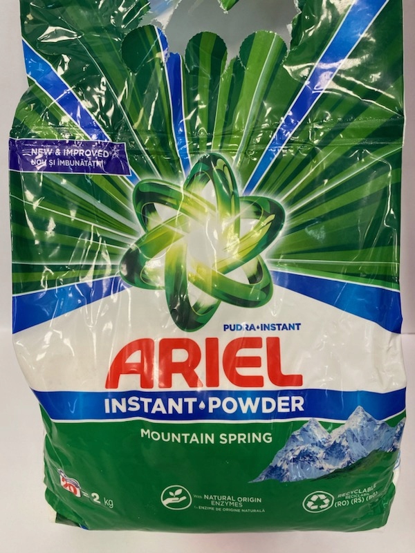 Ariel, бренд, рекомендований виробниками Whirlpool, Electrolux, Candy та Beko, представляє швидкорозчинний пральний порошок та засіб для прання Ariel Mountain Spring Fast Dissolving. Нова концентрована формула прального порошку Ariel забезпечує більшу силу прання, тому однієї упаковки вистачає на більше прань. Ідеально видаляє плями вже під час першого прання. Завдяки унікальній технології порошок швидко розчиняється у воді, миттєво активується і проникає глибоко в волокна навіть при низьких температурах. Знизьте температуру прання до 30°C, заощаджуючи до 60% енергії. (Енергоспоживання пральної машини, зниження температури з 60°C до 30°C, стандартний цикл). Прання при низьких температурах дозволяє захистити тканини на більш тривалий час порівняно з пранням у теплій воді. Формула містить біологічно розкладані інгредієнти (80% усіх органічних інгредієнтів біологічно розкладаються). Крім того, упаковка прального порошку Ariel Mountain Spring на 100% підлягає переробці.