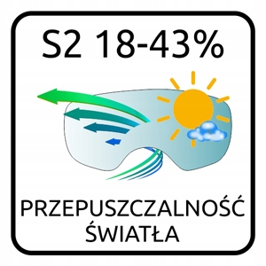 Фільтр категорії S2 - пропускання сонячного світла від 18 до 43%. Окуляри з цим фільтром рекомендовані для водіння в сонячний безхмарний день або з частковою хмарністю.