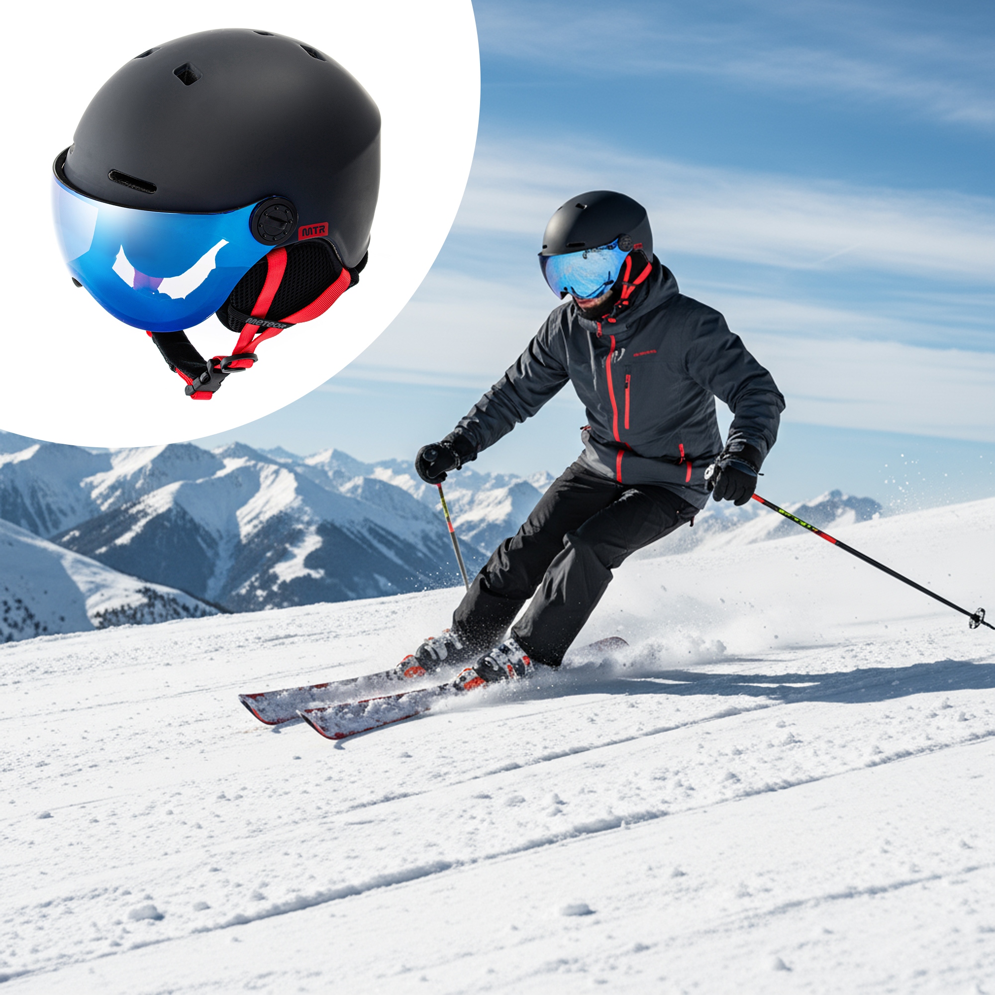 ШОЛОМ ДЛЯ СНОУБОРДУ ЗІ СКЛОМ METEOR FALVEN L 58-61 S2 фільтр темно-синій, регульований