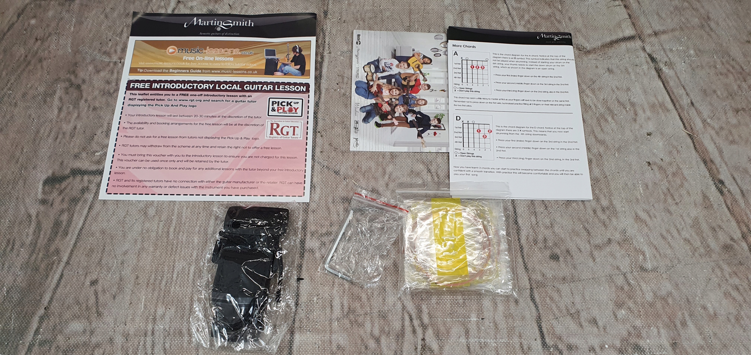 Британська компанія Martin Smith Guitars виробляє високоякісні інструменти для любителів, студентів і музикантів. Асортимент Martin Smith розроблено та виготовлено з урахуванням повноцінного звучання. Набір включає, серед іншого: підставка для гітари, футляр, ремінь, рюкзак і запасні струни.