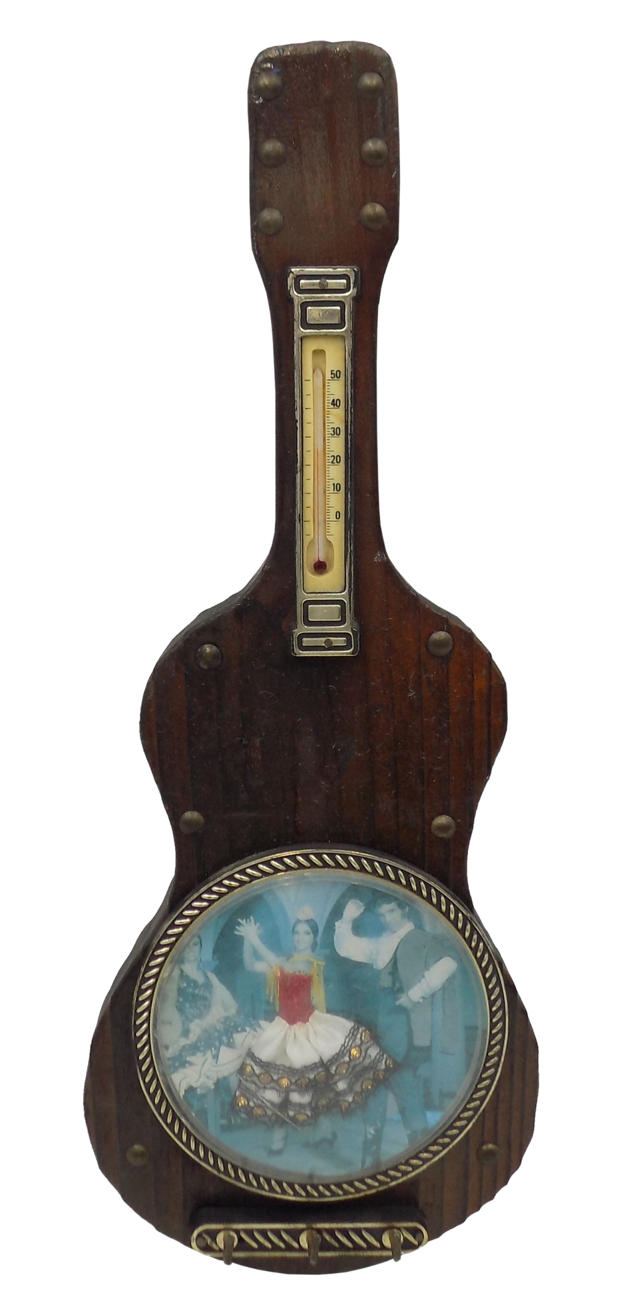 декоративна вішалка з термометром з дерева, ймовірно, з періоду PRL. Розміри; Висота 34 х 12 х 4,5 см.