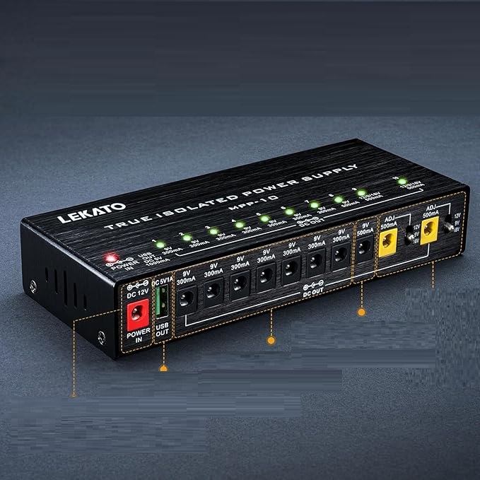 Гітарне живлення 10 ізольованих випусків постійного струму