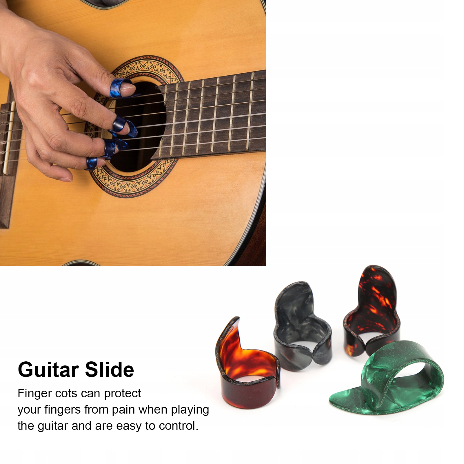 4. Куби гітар виготовлені з целюлоїдів, легкі та гнучкі, підходящі для довгої гри. Покриття палець захищає пальці від болю під час гри на гітарі і легко контролювати.