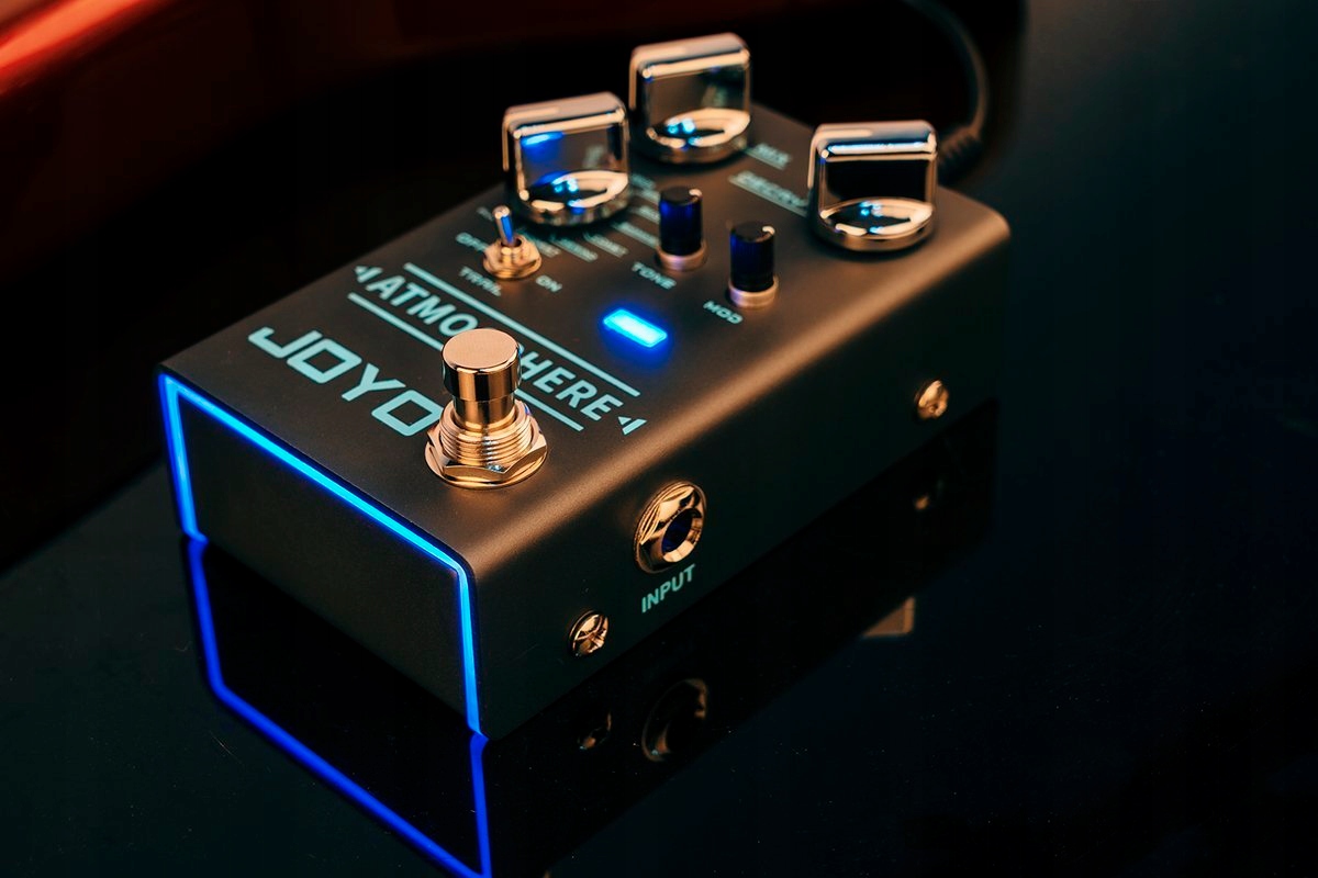 Joyo Atmosphere має 9 вбудованих типів цифрової реверберації, зокрема SPRING, CHURCH, PLATE, EKO-VERB, SHIMMER COMET, REWIND, FOREST і PULSE. Крім традиційних регуляторів MIX, DELAY і TONE, цей ефект дозволяє контролювати глибину ефекту MODULATION, призначеного спеціально для цього типу ефектів. Функціональний перемикач TRAIL дозволяє вимкнути звук ефектів і зробити їх природнішим, коли їх увімкнено.