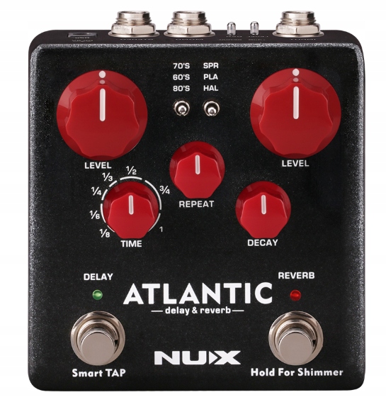 NUX Atlantic — це ефект найвищої якості, що поєднує три типи ефектів затримки та реверберації. Кожна сторона має три режими роботи, а додаткові опції Shimmer і Freeze додадуть сліпучий характер вашим звукам. Завдяки можливості перенаправляти шлях сигналу, ви можете встановлювати ефекти паралельно або послідовно в будь-якій конфігурації. Стереовихід і USB для оновлення програмного забезпечення ще більше розширюють його можливості.
