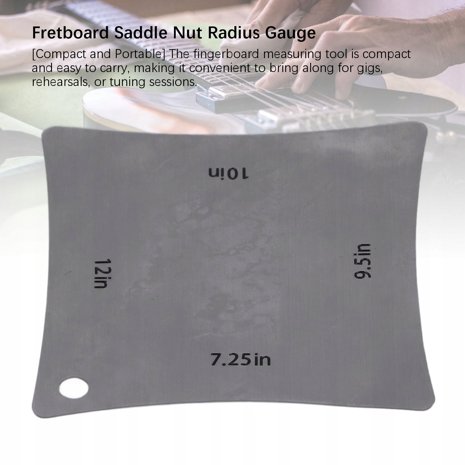 1. [Дизайн 4 в 1] Цей вимірювач радіуса гітари має 7,25 дюйма, 9,5 дюйма, 10 дюймів, 12 дюймів з кожного боку, що дозволяє точно вимірювати додатковий радіус, підходить для більшості гітар.