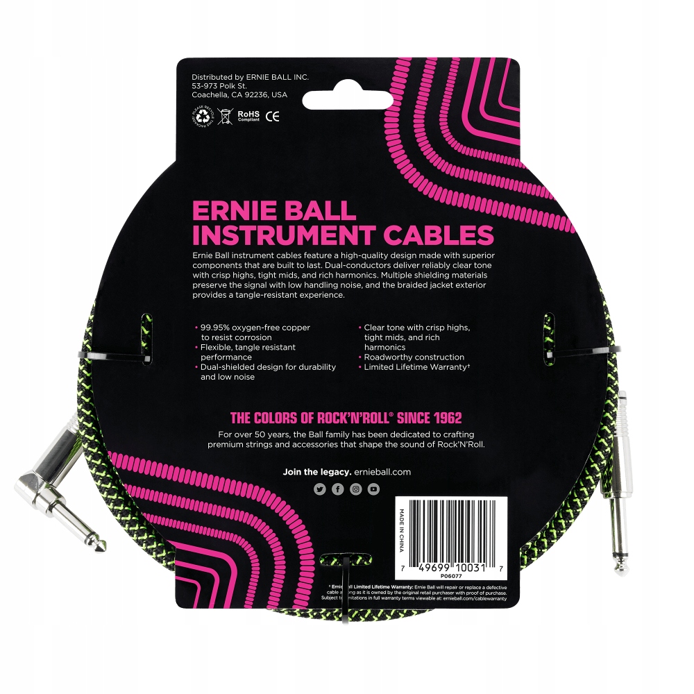 Ерні Бал протягом багатьох років звикає до продуктів найвищого класу. Це не відрізняється від останніх кабелів у пропозиції, яка характеризується високою якістю виробництва. Чудові компоненти та великий акцент на екранізації забезпечують проблеми, яке не містить неприємностей у студії та на сцені. Заплетені серії - це кабелі в бавовняній косі зі зламаною і прямим і довжиною та довжиною 3,05 м.