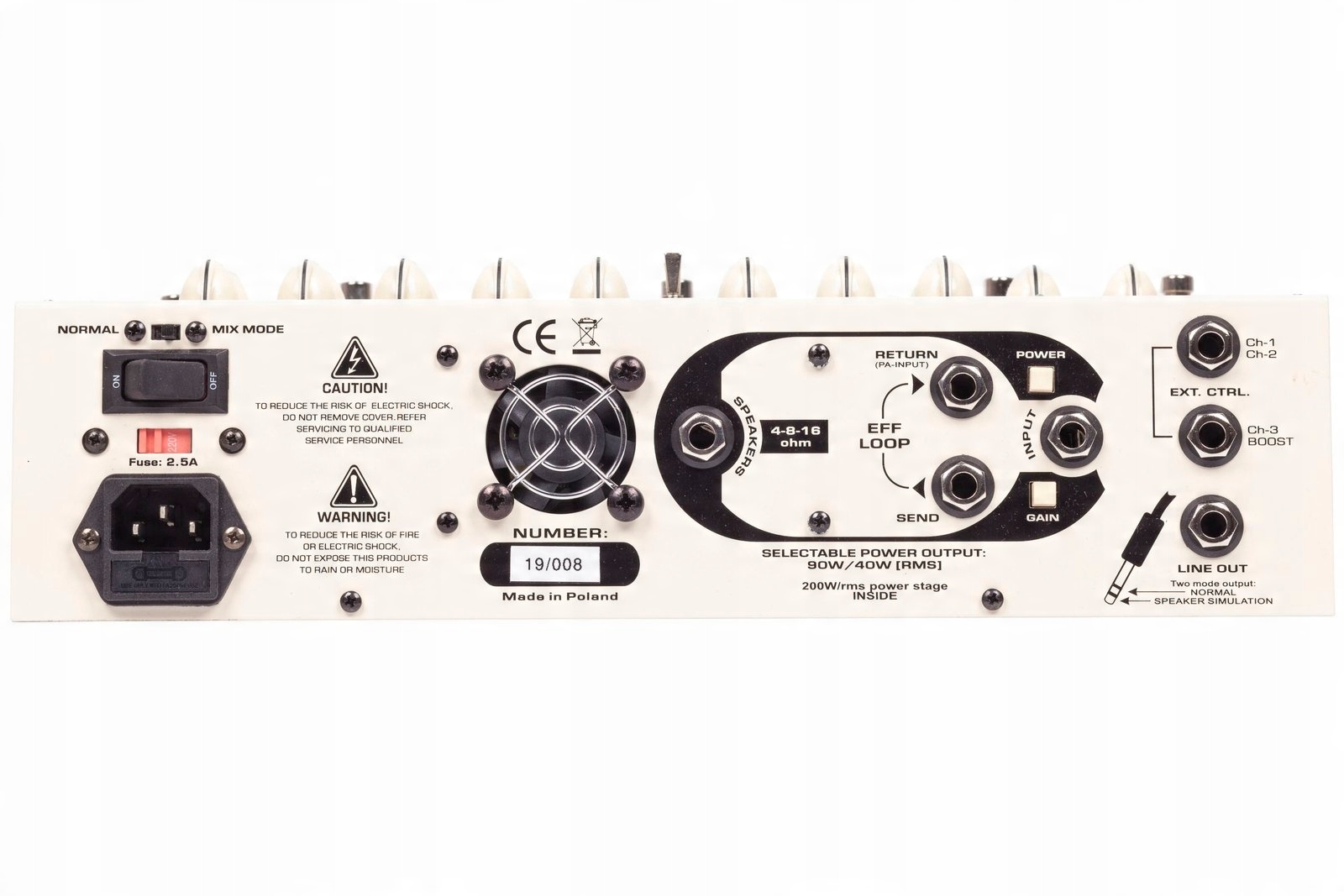 3 канали: CLEAN, Classic LEAD, High Gain LEADКерування каналом CLEAN: BASS, MIDDLE, TREBLE, GAIN, VOLUME + перемикачі: MID-RANGE, BRIGHTLEAD Керування каналом: DRIVE, BASS, MIDDLE, TREBLE, VOLUME + перемикачі: MID-RANGE, BRIGHT-DARKLEAD Керування каналом посилення: DRIVE, BASS, MIDDLE, TREBLE, VOLUME + перемикачі: MID-RANGE, BRIGHT-DARKГоловне керування: NOISE GATE, BOOST, MASTERLINE-OUT: вихід лінійний із симуляцією колони гучномовців
