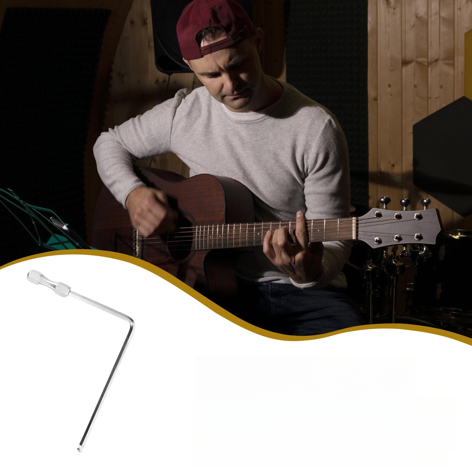 ✅ten Ключ від гітарної шиї був спеціально розроблений для регулювання дерев'яних гітари Гриффіна. Цей ключ до батончиків підходить для більшості дерев’яних гітар. .