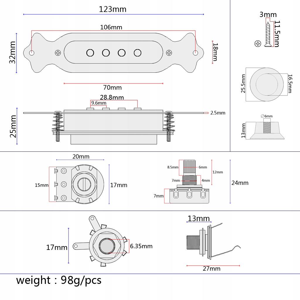 Попередньо підключений 4-струнний електричний звукознімач сигар з гучністю та тембром