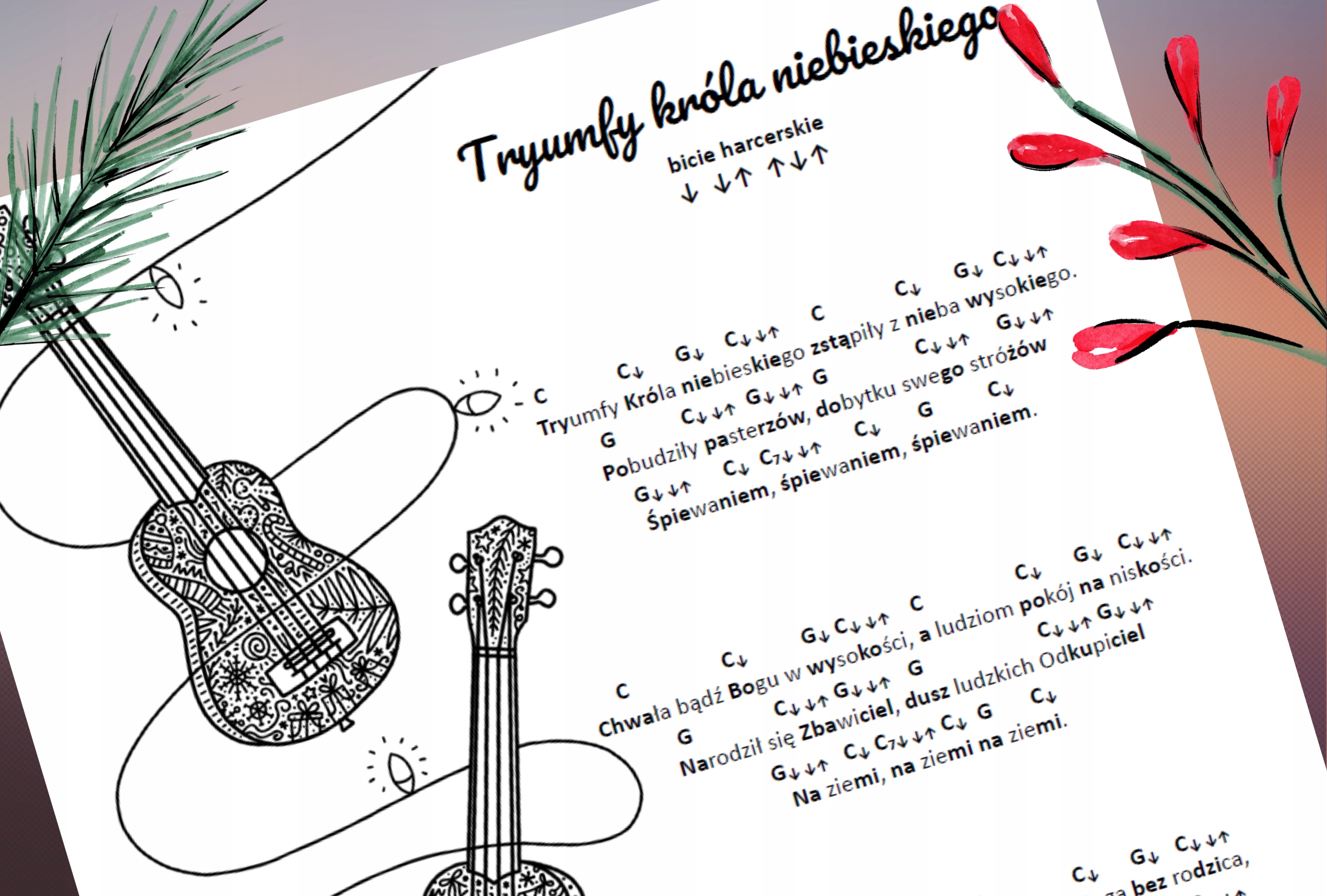 акорди видно над усіма куплетами, а не як це часто буває, тільки над першим куплетом і приспівом. Відтепер ви будете грати та співати всю колядку!