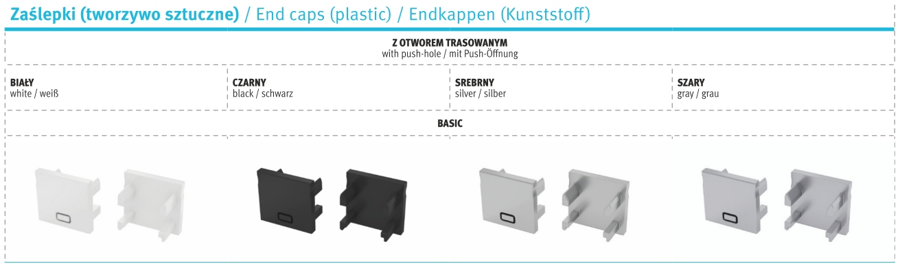 Кінцева/бічна ковпачок для Falco Grey, чорного, білого алюмінієвого профілю