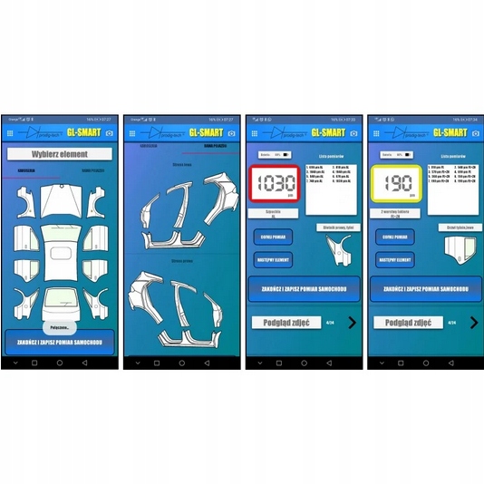 У професійному режимі також є можливість зберегти вимірювання у вигляді звіту. З версією лічильника GL-SMART-S можна зробити 24 фотографії для кожного виміряного автомобіля. Для цього натисніть на значок камери у верхньому правому куті програми. Фотографії будуть збережені в каталозі разом із розмірами даного автомобіля. Фотографії зберігаються окремо для кожного тестованого автомобіля.