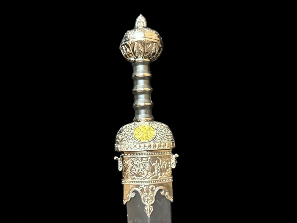 jelec: метал, багативані символи, пов'язані з Римською імперією (на одній Подайте чар -орел з другим вовком, що годує Ромулом та Ремусом)