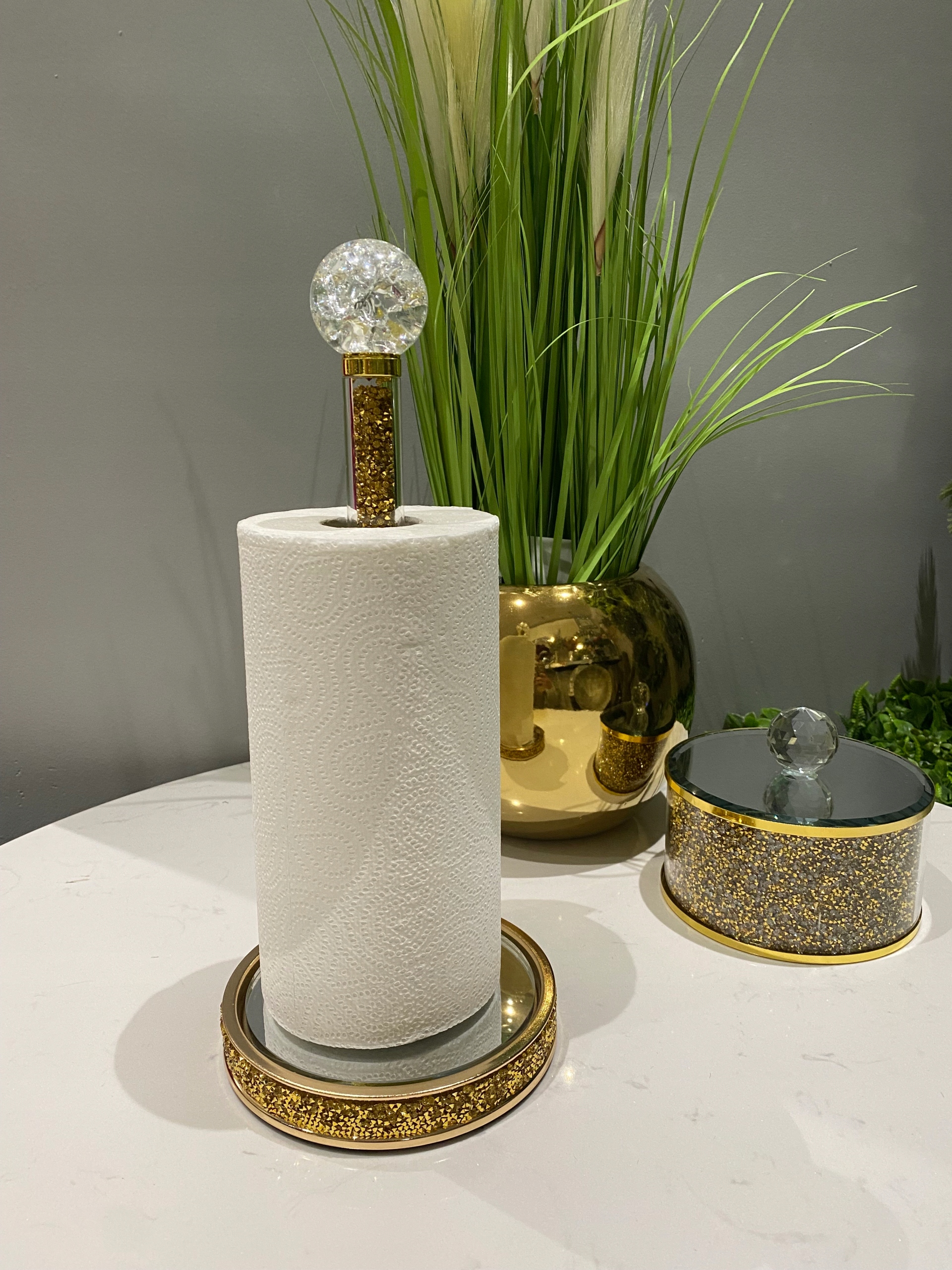 Кухонний паперовий підставка-це дуже ефективне доповнення до кухні, їдальні або ванної кімнати. Ідеально підходить для номерів, прикрашених у гламурі чи Нью -Йорку. Підходить до всіх рулонів паперу, захищає їх від змочування та сприятиме його розвитку.