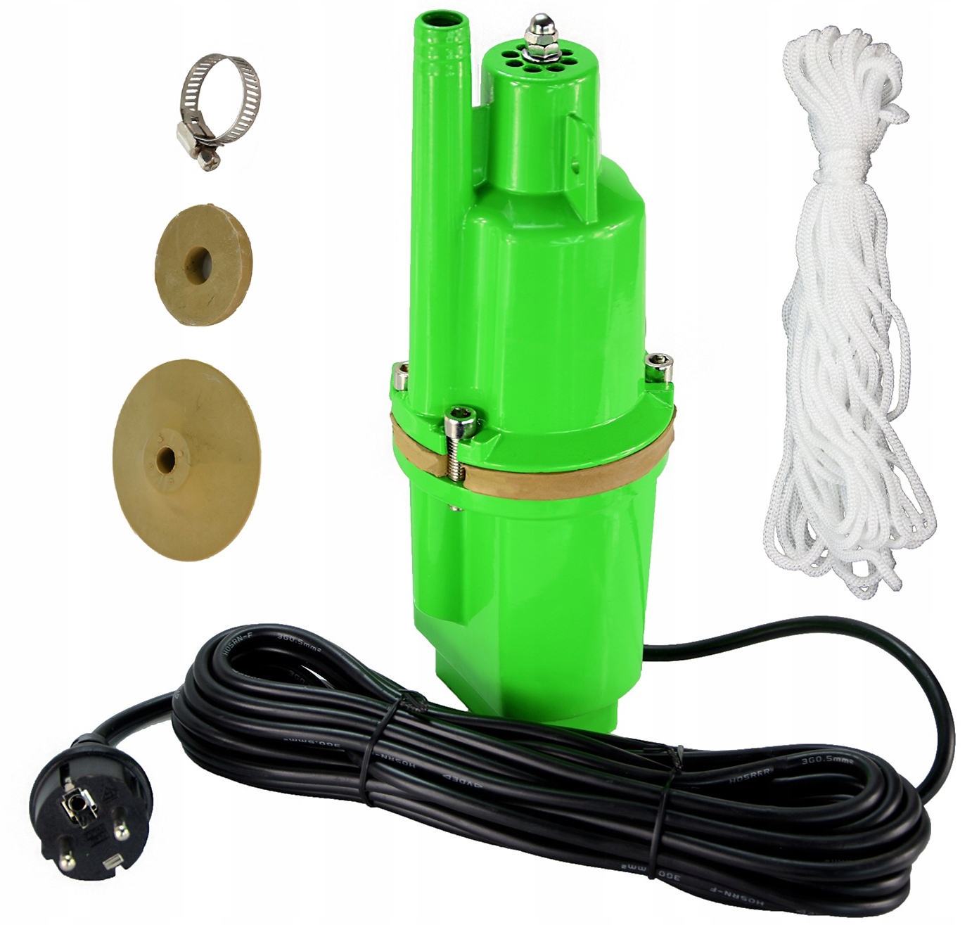 - Оснащений довгим, рідко доступним для цього типу насосів довжина кабелю 8 м, що дозволяє полегшити роботу і не потрібно гратися з подовжувачами, використання яких завжди несе певну небезпеку.