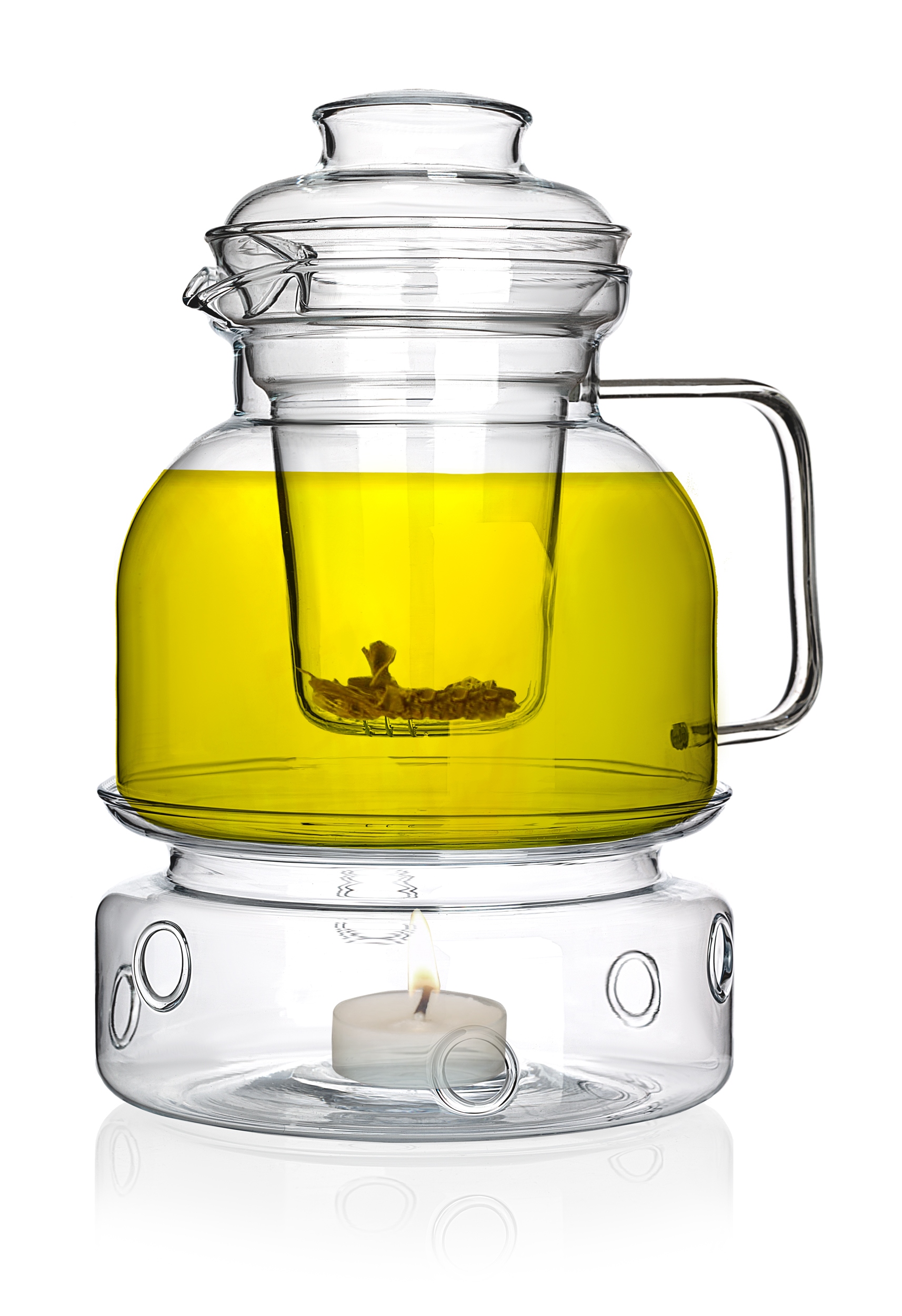 Елегантний глечик з нагрівачем і заваркою. Виріб виготовлено з міцного і термостійкого боросилікатного скла.Ідеально підходить для заварювання кави, чаю або трав.