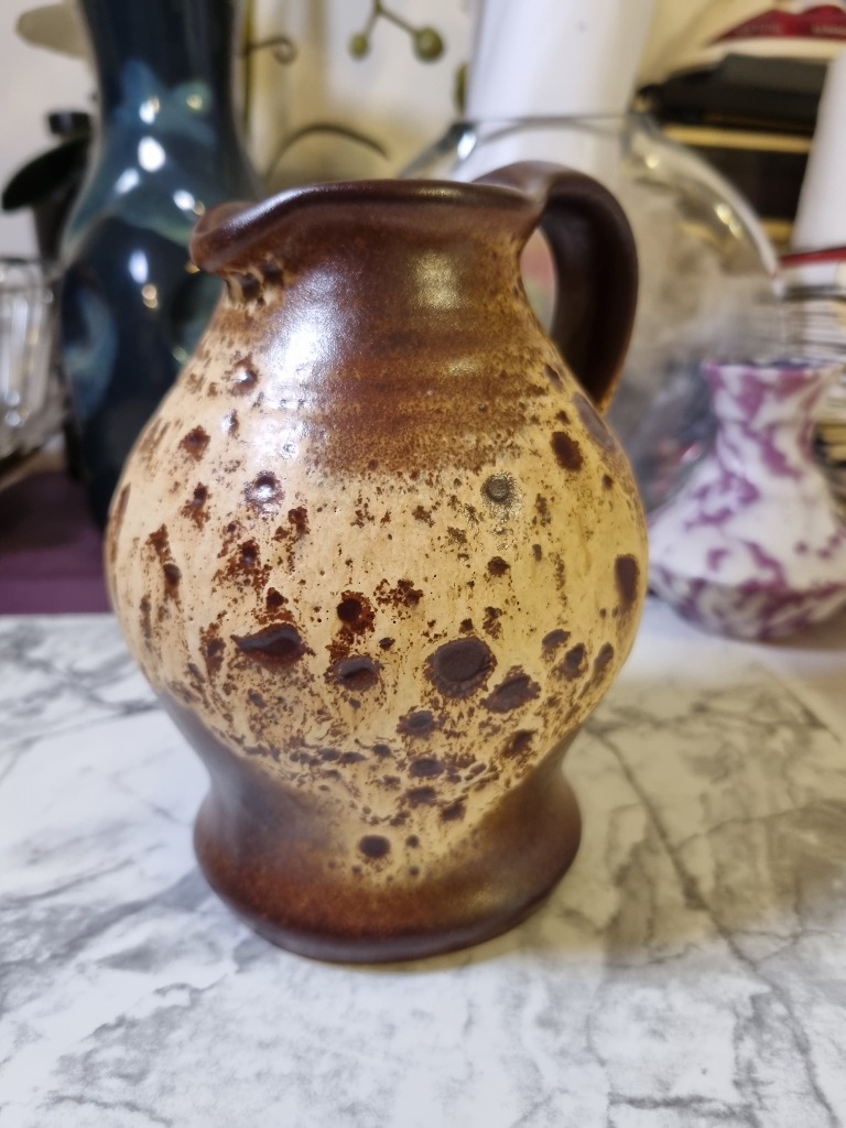 Гарний унікальний керамічний глечик у модному стилі жирної лави.