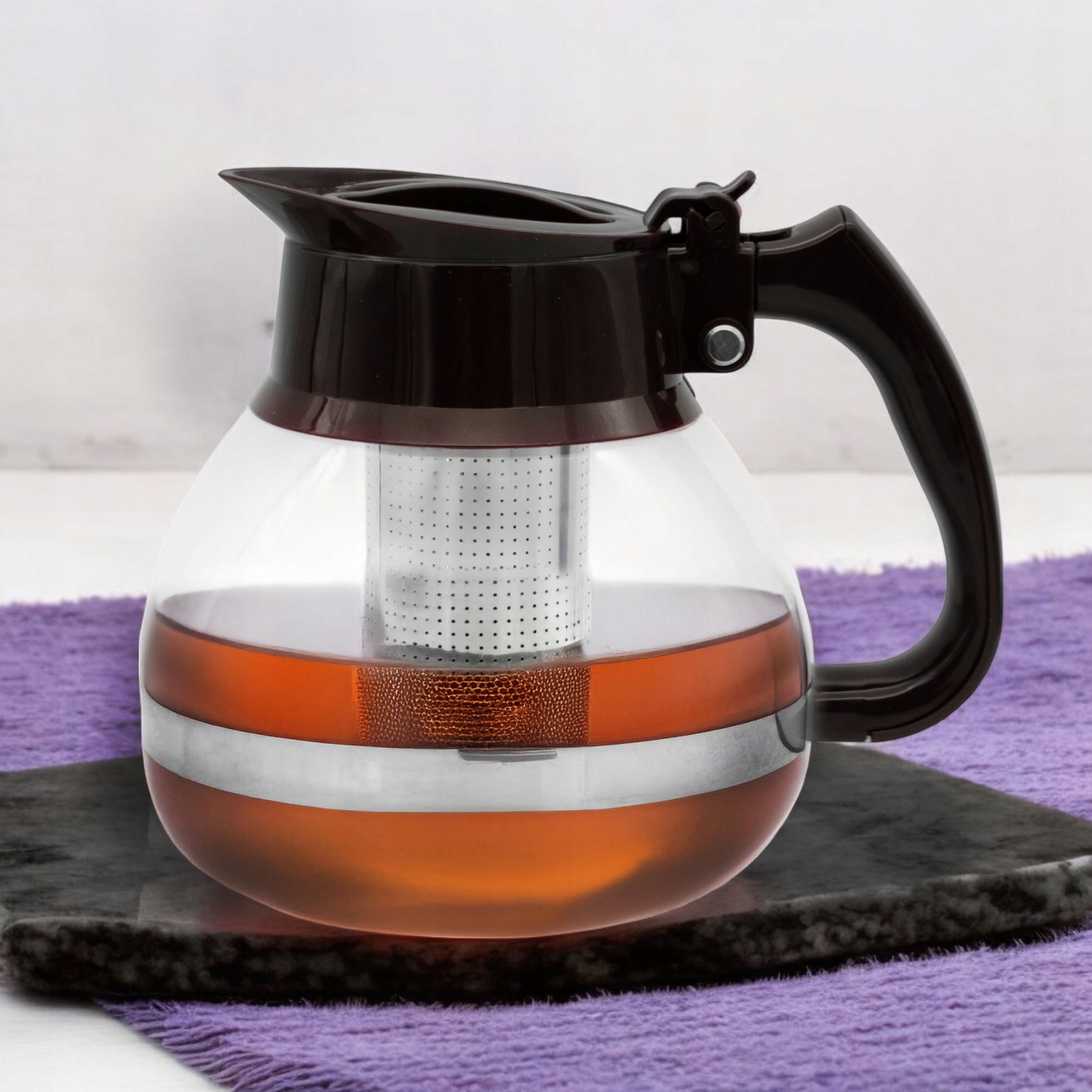 Глечик із заваркоювиготовлений із високоякісного скла та пластику. Прикріплене ситечко дозволяє витягти природний і надзвичайно сильний аромат заварених чаїв або трав. Глечик ідеальний для любителів листових напоїв - він запобігає потраплянню в напій шлаку. Має ергономічну ручку, що не нагрівається. Верхня частина глечика закінчується носиком, який запобігає розливанню напою під час наливання.