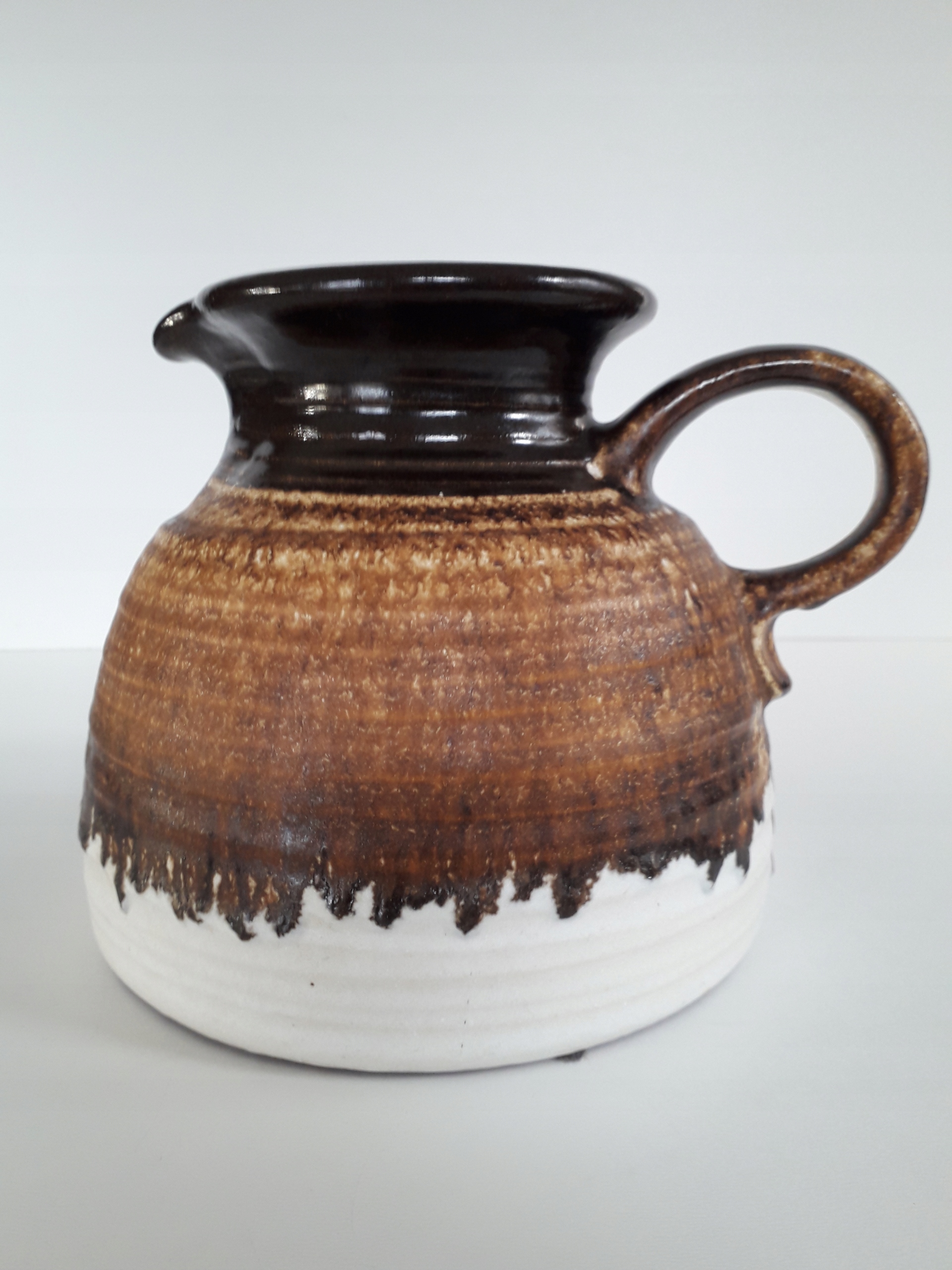Керамічний глечик діаметром 17 см в найширшому місці, ручка виступає 3 см, висота 15 см, місткість 1,7 л, вага 0,93 кг. Дуже хороший стан. Код товару 2057.