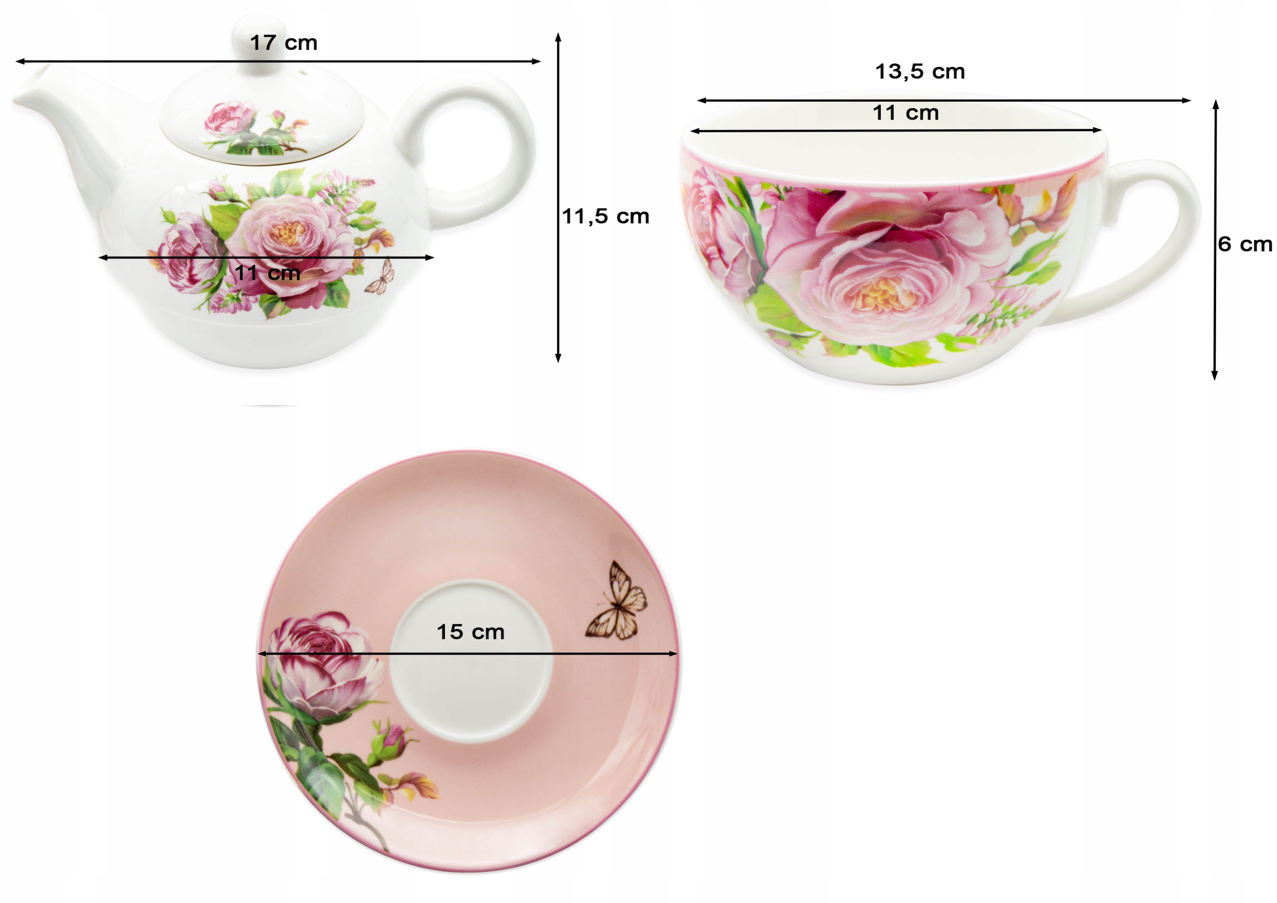 Глечик і чашка виготовлені з високоякісної порцеляни. Це елегантне доповнення при подачі чаю гостям. Він ідеально підходить для ресторану, але також може стати прикрасою столу в будь-якому будинку. Набір упакований в елегантну коробку, що робить його ідеальним в якості подарунка.