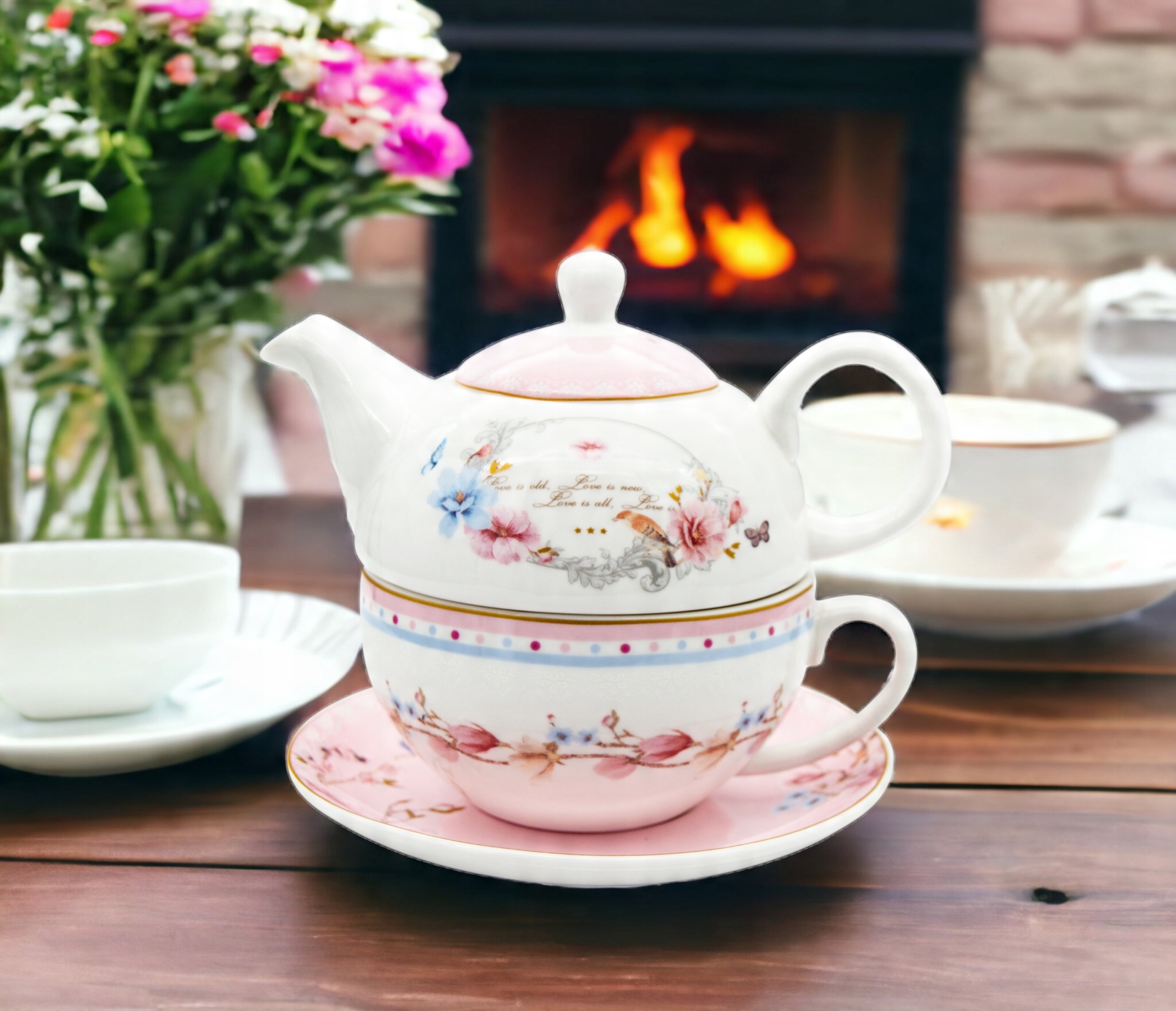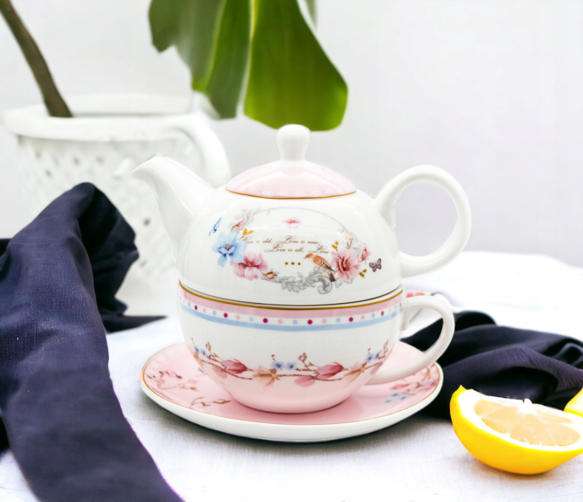 Глечик і чашка виготовлені з високоякісної порцеляни. Це елегантне доповнення при подачі чаю гостям. Він ідеально підходить для ресторану, але також може стати прикрасою столу в будь-якому будинку. Набір упакований в елегантну коробку, що робить його ідеальним в якості подарунка.
