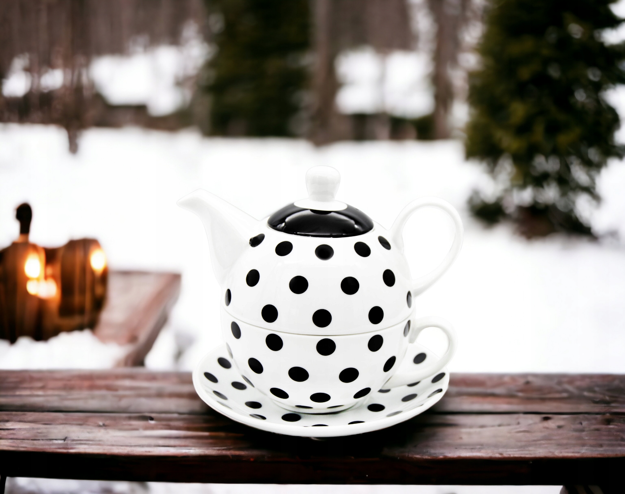 - Глечик з чашкою та блюдцем з порцеляни