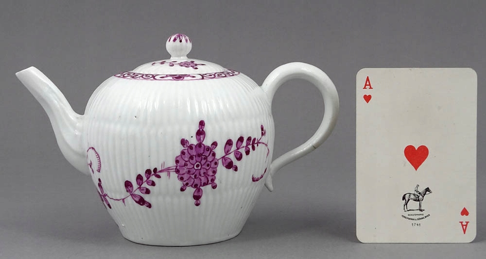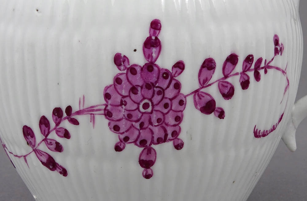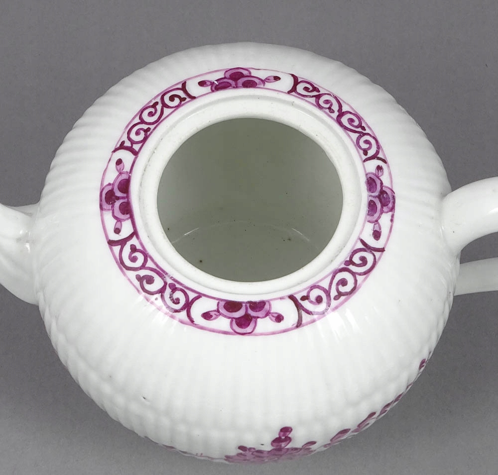 прикрашений мотивами «Indische blumen». Основа круглої форми, з сильно випнутим черевцем, має хвилясту структуру, з одного боку ручка, з іншого – тонкий носик. Зверху є кришка з кнопкою і невеликим отвором для відведення пари. Все це розписано квітковими мотивами в поєднанні з листям, а також геометричними візерунками зверху.