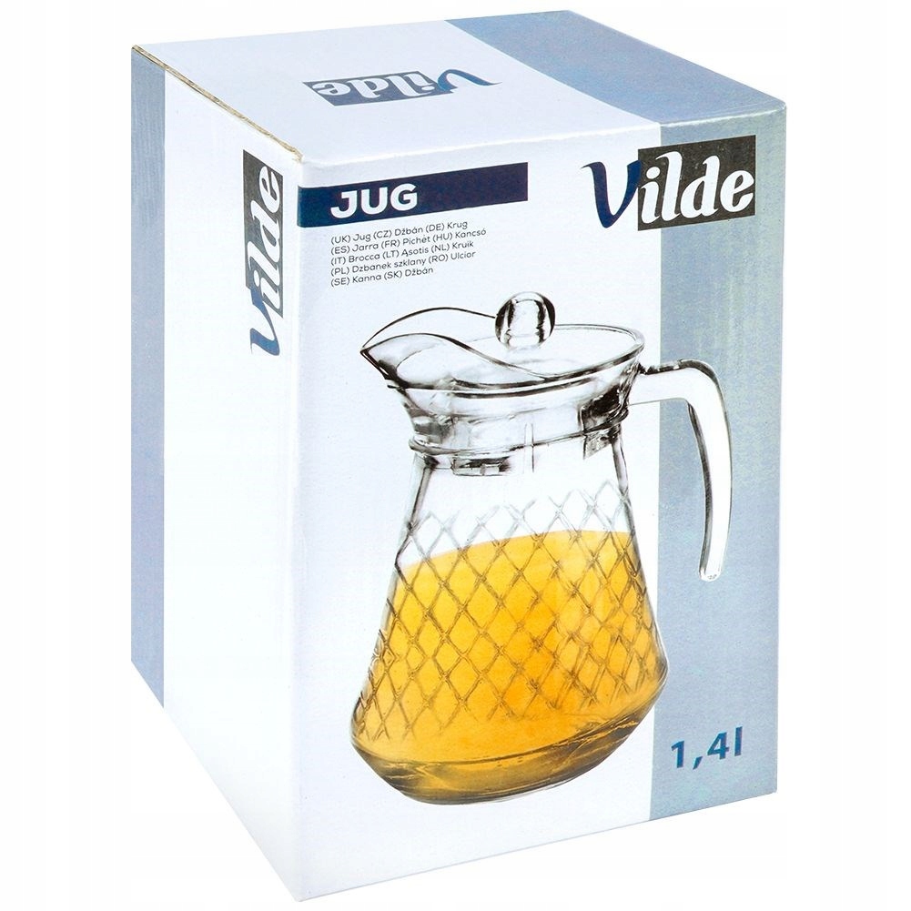 Глечик скляний для напоїв. Зручний у використанні. Завдяки профільованому виливу розливати надзвичайно легко. Глечик ідеально підходить для подачі різних напоїв. Без кришки його можна мити в посудомийній машині. Зберігати напої можна в холодильнику. Має класичну форму, тому чудово впишеться в будь-який посуд. Оригінальний продукт Vilde. Вироблено відповідно до європейських стандартів.