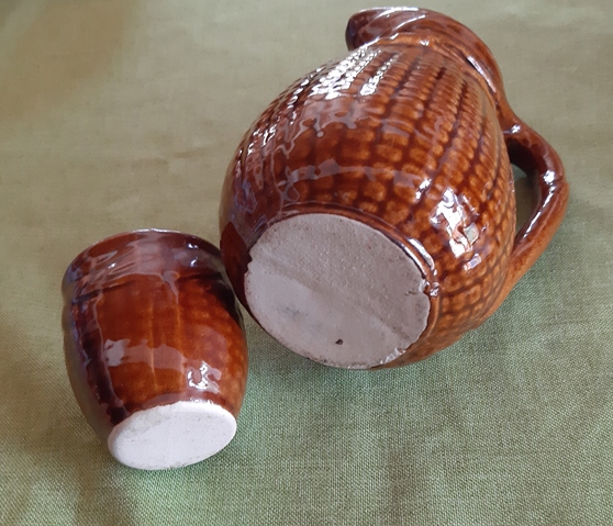 ГЛЕЧОК х 6 ГРУЖОК, кераміка, сувенір Польської Народної Республіки, візерунок коричневої кукурудзи / ee