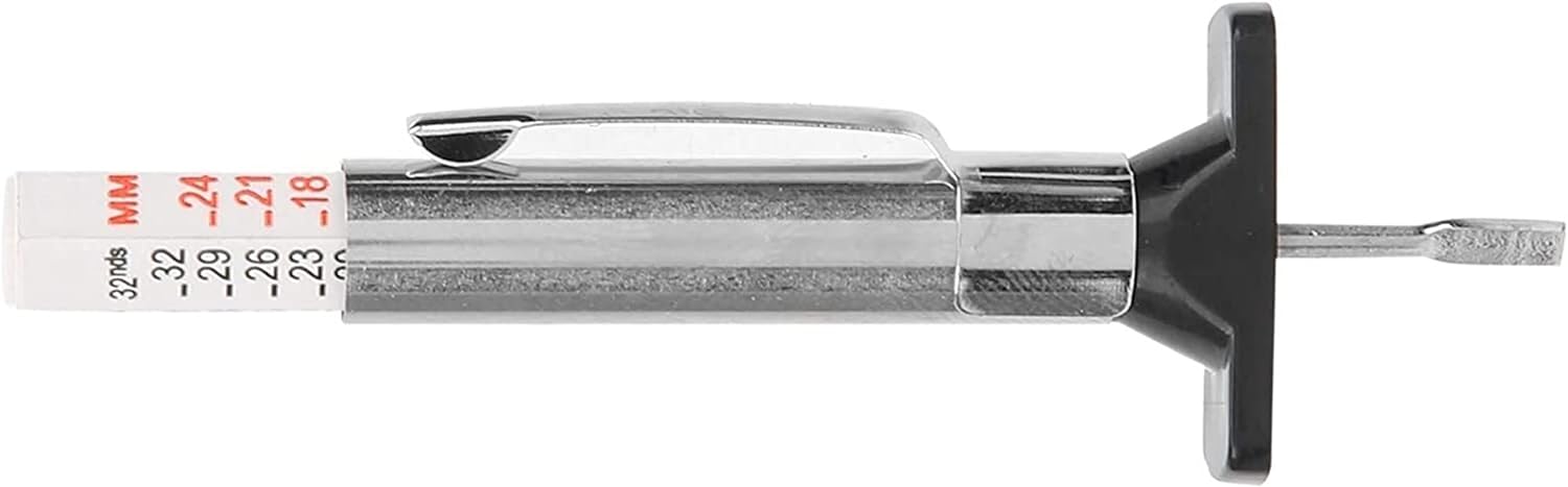 Носіть його з собою та використовуйте будь-де, де є кишеньковий затиск, щоб полегшити носіння вимірювача глибини протектора шини. Виготовлений з високоякісної нержавіючої сталі та матеріалу Abs, що робить його та має високу надійність. Універсальний тип можна використовувати для всіх типів автомобільних шин, тож вам не доведеться турбуватися про проблему неадекватних можливостей. Завдяки чіткій цифровій ідентифікації для легкого тестування використовуйте циліндричну вимірювальну лінійку для більш точного тестування. Діапазон глибини вимірювання становить 025 мм, що можна точно виміряти та має високу практику.