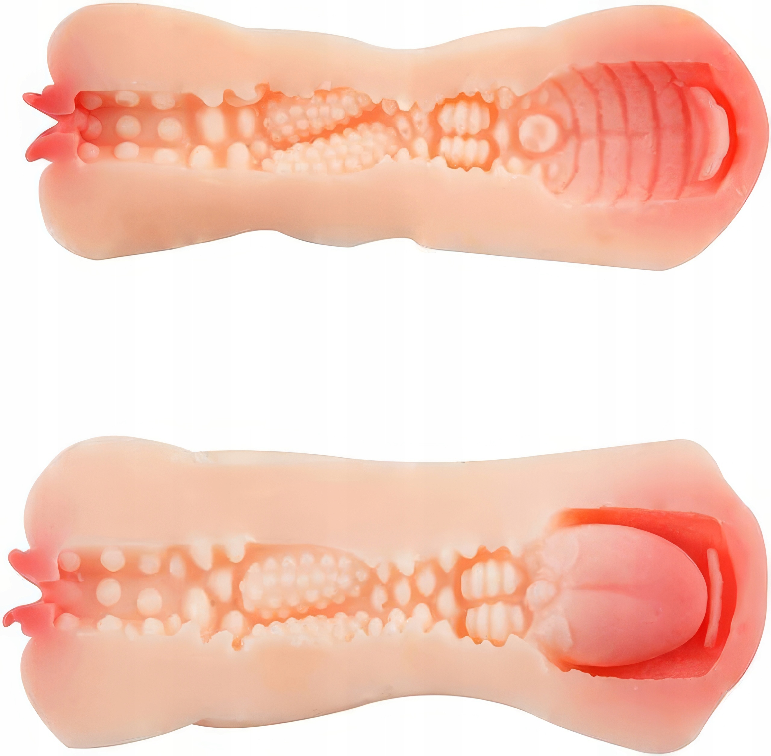 Мастурбатор з ротом і піхвою. Виріб має безліч масажних виступів по всій довжині. Ретельно зроблено з відтворенням кожної деталі, також є малі статеві губи та клітор, що створює природне відчуття. Виріб також має горловину, тому ви можете використовувати його один раз у роті та один раз у піхву. Виріб водонепроникний. Чехла зручна у використанні завдяки своїй формі.