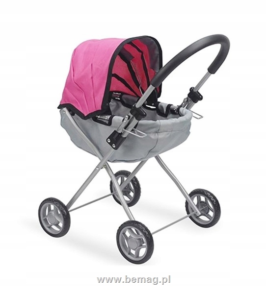 Металевий глибокий складний візок рожеро-сірого кольору. Завдяки йому, дівчата зможуть взяти свою улюблену ляльку на прогулянку. Продукт упакований у прозору сумку. Коляска, призначена для дітей віком від 3 років.